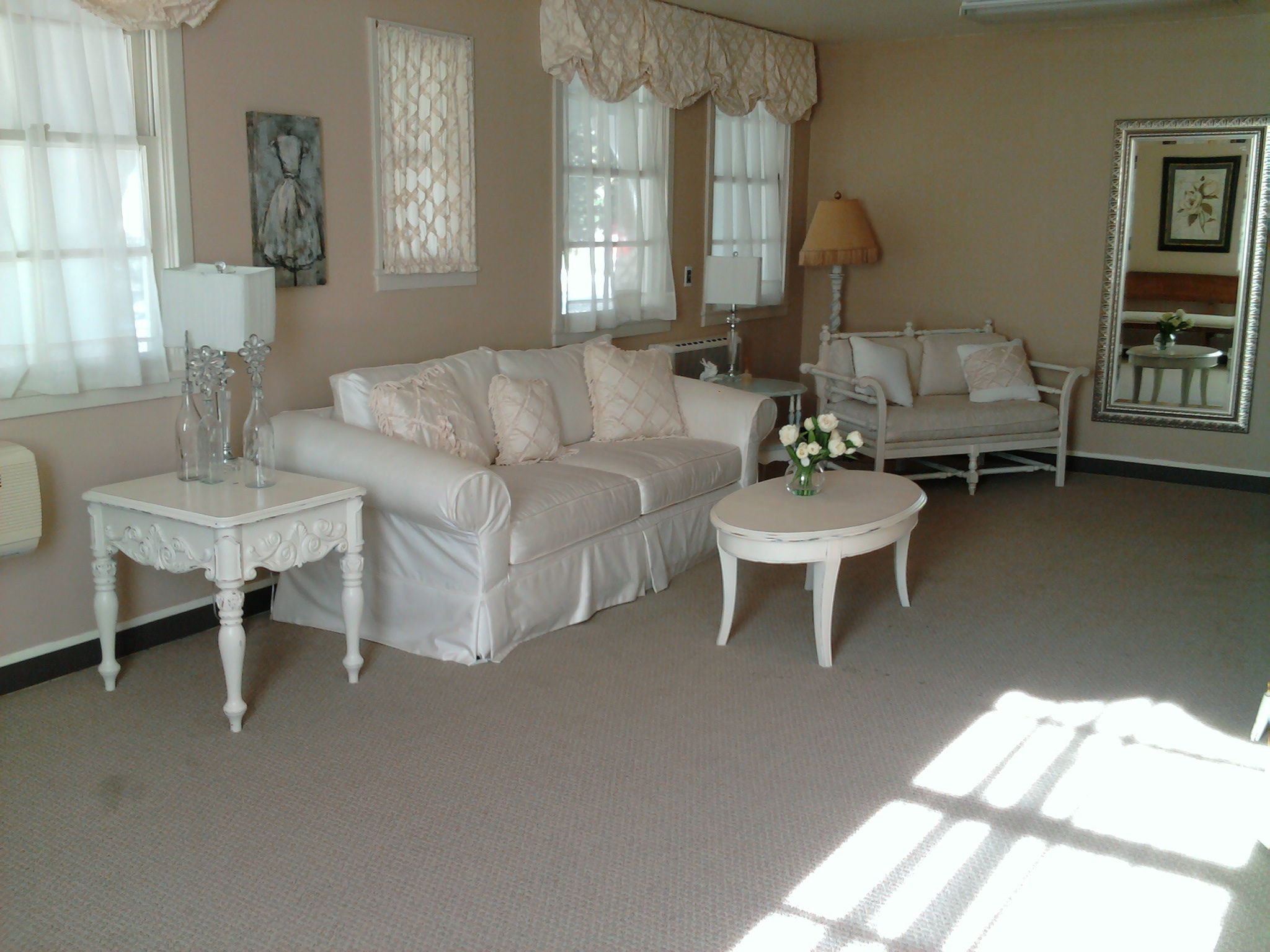 And, ladies, you will love the HUGE and beautifully appointed getting-ready room. The guys have a great hang-out spot as well – there is plenty of comfortable space for all your family and wedding party to gather before the ceremony starts.