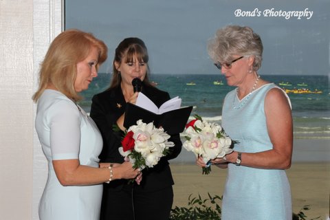 If you mother has died, there are many ways to honor her in memoriam. Your officiant can acknowledge her during opening remarks. You can leave an empty chair at the front row, perhaps even with a single white rose on it. You can include photos of her at a special “In Memoriam” table at the ceremony.