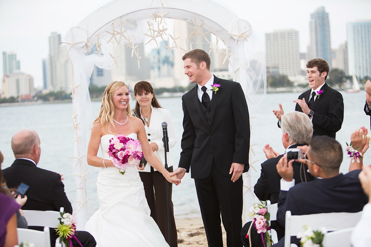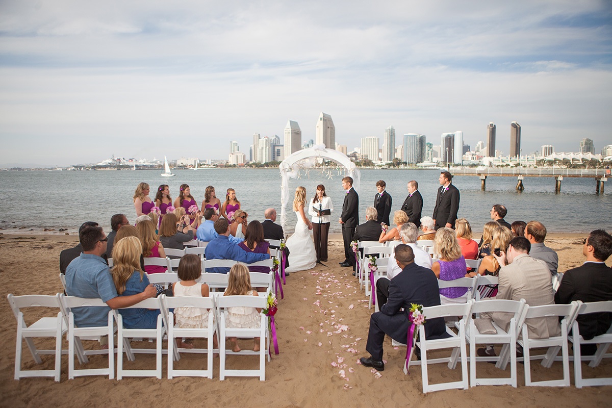 One of the most beautiful spots for a wedding ceremony is offered by Candelas on Coronado. Toes in the sand, lapping waves and a backdrop of America’s Finest City – downtown San Diego.
