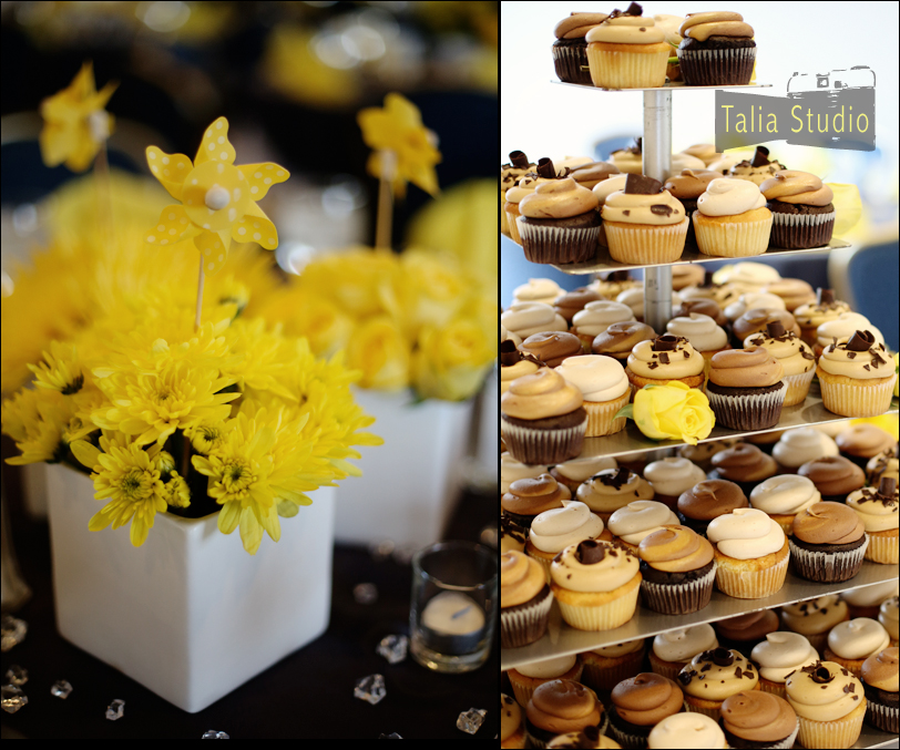 Mother of the Bride created these sweet whimsical centerpieces. Yummy Cupcakes provided by SweetCheeks Bakery